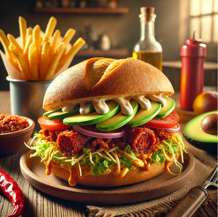 *Servido con Mayonesa, Frijoles, Lechuga, Tomate, Queso, Aguacate, Cebolla, y Chipotle Mayo*